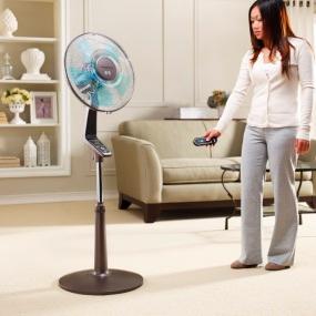 For maximum convenience, the Rowenta VU5551 Turbo Silence 16-Inch Pedestal Fan can be activated with a remote control, the height of the fan is adjustable (42-Inch to 54-Inch), its base is extra stable and the head has an integrated handle for easy transportation around the home. The frontal grid of the fan head can be removed for easy cleaning of the blades.