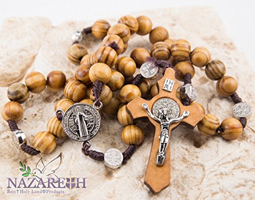 - Marvelous Catholic Jerusalem St.Benedict Rosary , Beautiful Olive Wood Beads With Small Metal Separating St. Benedict medals That Lead to San Benito Medallion And To Silver Plated Wooden Crucifix that hangs from a single row of beads,Handmade From Holy Land.