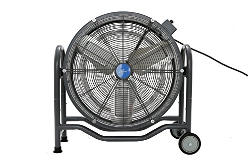 This iLIVING 24" BLDC mobile fan is designed to move a large amount of air for offices, factories, warehouses, loading docks and auto shops. Its brushless DC electric motor has a fan speed that ranges from 10 CFM to 5800 CFM, allowing the user to have a wider range of choice, yet still cost efficient, using only 210W at maximum speed. This fan has a 3-blade aluminum propeller with a built-in 360 Degree tilt feature; and the fan housing is constructed of heavy-duty steel with powder-coated wire guards in compliance with the United States OSHA Standard 1910.212, 1/2" opening requirements. BLDC Motor Speeds Continuous variable, Voltage 115, Hz60, 210W Watts, Phase1, Low 10CFM and High 5800CFM, Air Velocity (FPM) at 20 Ft. 390/340, Motor HP1/2, Motor RPM200-1150, Operating Amps3.1, Fan RPM200-1150, Industrial Applications, Partially Assembled, Sound Level5-68dB, Max. Ambient Temp 104 Degrees F, Totally Enclosed Air-Over Motor Enclosure, Class B Motor Insulation, Auto Thermal Protection, Bearing Type Ball, 28"H x 34 1/4"W x 19 3/4"D, 9 ft. cord, NEMA plug 5-15P, 3 Aluminum Blade, Steel Housing, 7" Plastic and Rubber Casters, Steel Guard, Spot cooling and people cooling, Standards UL/CSA/OSHA.